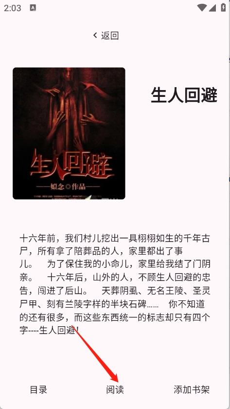 点开想看的小说资源进入详情页,点击“阅读”。