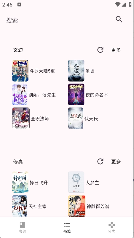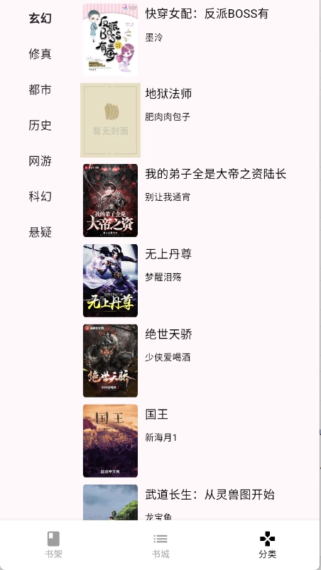“书城”页面汇聚了丰富的小说资源,涵盖玄幻、悬疑、都市等多种类型。