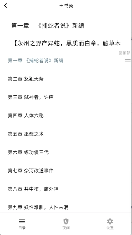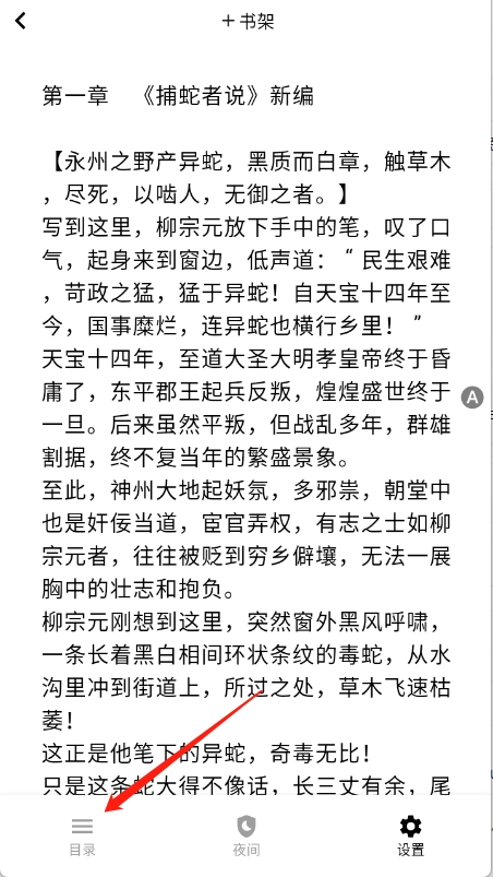 点击进入小说正文阅读页面,点击屏幕任意位置,再点击“目录”按钮。