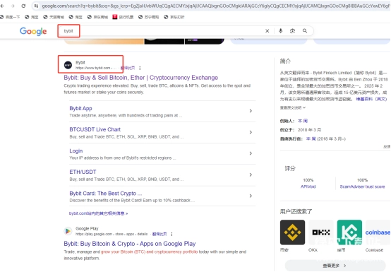 用户通过谷歌浏览器搜索“bybit”,找到并点击进入了bybit的首页。