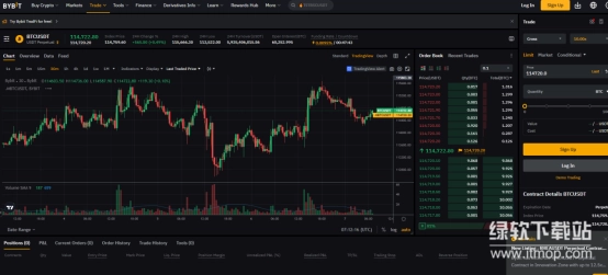 Bybit的贸易板块集成了实时价格图表、深度订单簿及交易历史等核心模块,图表支持多时间框架切换与技术指标叠加,助力用户精准分析走势;右侧订单簿实时展示买卖盘口数据,配合快捷下单面板,确保交易执行高效;同时,界面整合了持仓、当前订单及历史交易记录,方便用户全面管理交易活动。