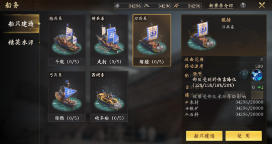 以朝代更加丰富的《王于兴师》为例,其“瀚海牵星”剧本引入的汉唐著名战船,从形制到战力都极为考究:外观高度还原历史,战斗性能也基于史实进行了精细复刻。例如艨艟就对应东汉史书记载的“以生牛皮蒙背”,完美还原了其优异的防御特性。海鹘作为唐代尖底战船,其“虽风浪涨天,无有倾侧”的抗浪性能,转化为了游戏中卓越射击精度。