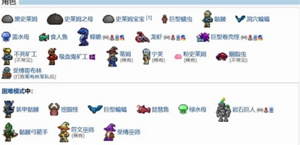 敌对生物:黑史莱姆、洞穴蝙蝠、史莱姆之母等