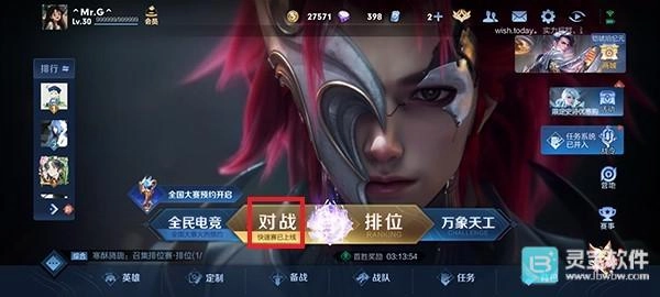 1、打开王者荣耀手游,进入到大厅界面,点击“对战”选项;
