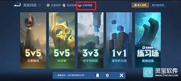 2、进入到竞技对抗页面,点击上方的“近期调整”按钮;