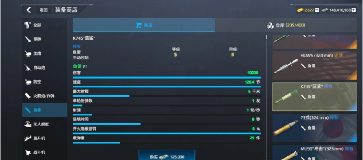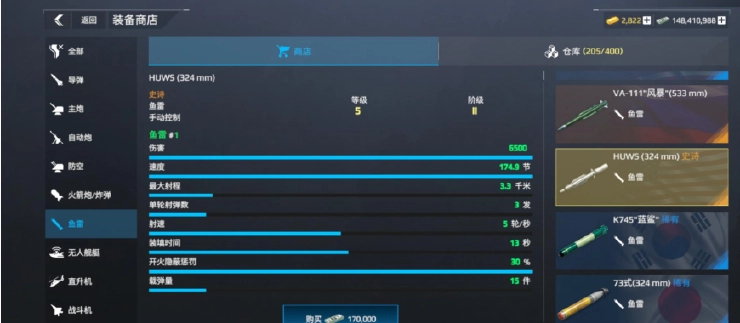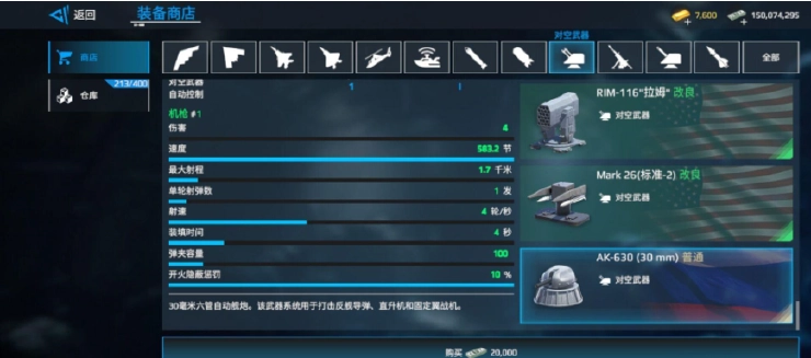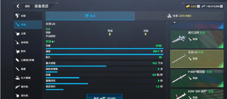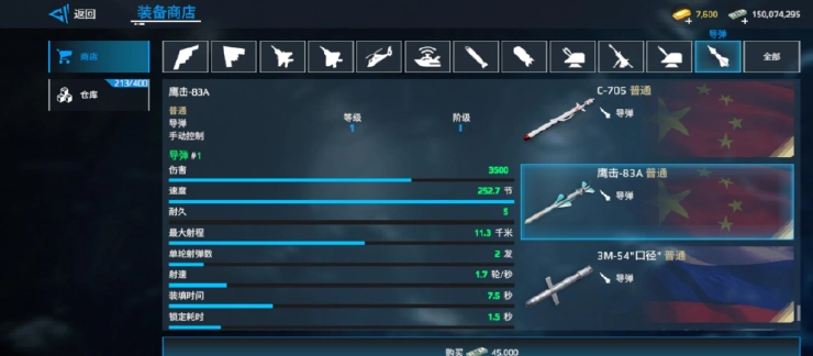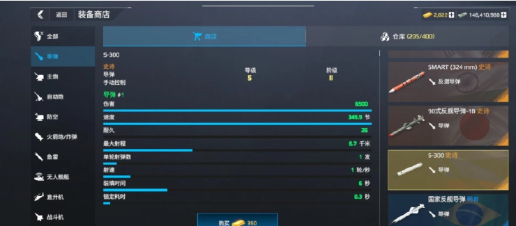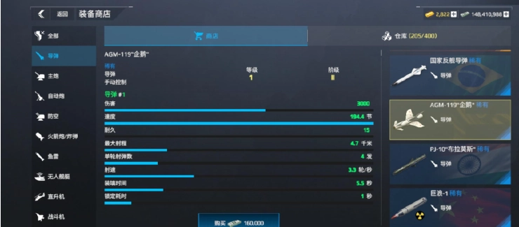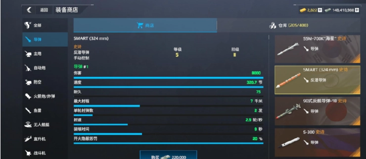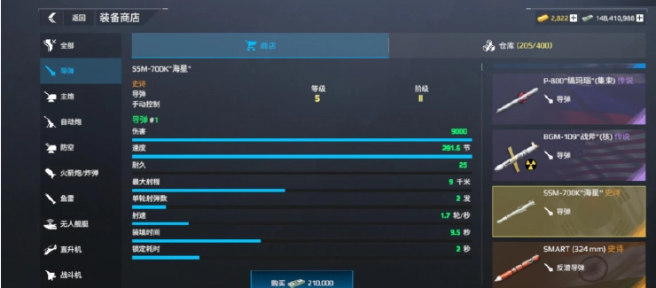 二级中唯一的防空导弹(也可以反舰)不推荐购买,除非…做任务需要<打飞机>。
