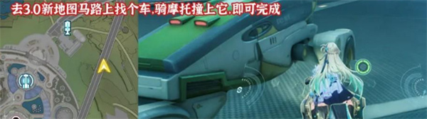 在3.0新地图马路上找个车,骑摩托撞上就可以了