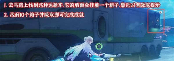 ** 去马路上找到运输车,它的后面会挂着一个箱子,靠近有吸取提示