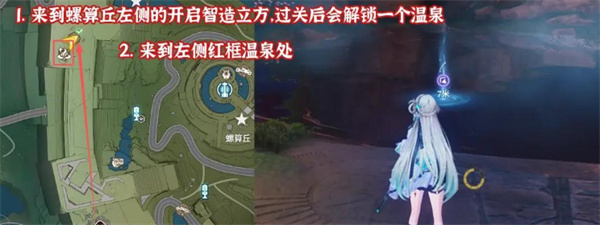 ** 来到螺算丘左侧的开启智造立方,过关后会解锁一个温泉