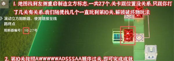 ** 在地图找到左侧重启制造立方标志,一共有27个,找到几个后一直玩到第10关解锁破坏物玩法