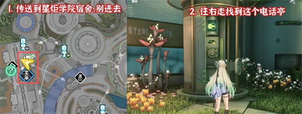 ** 传送到星炬学园宿舍,往右走找到电话亭