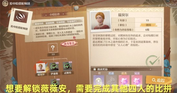 1、要完成四位NPC的搭配比拼,完成之后打开搭配实力界面,点击薇薇安名字旁边的问号箭头