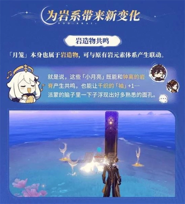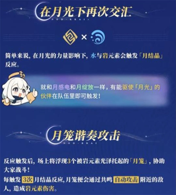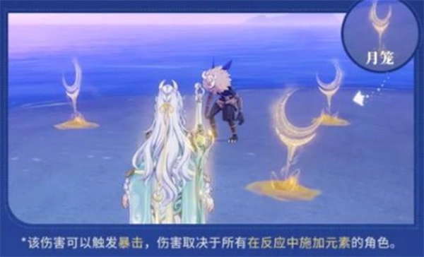 触发条件:队伍内存在能够驾驭「月光」的角色,且水元素与岩元素发生交汇