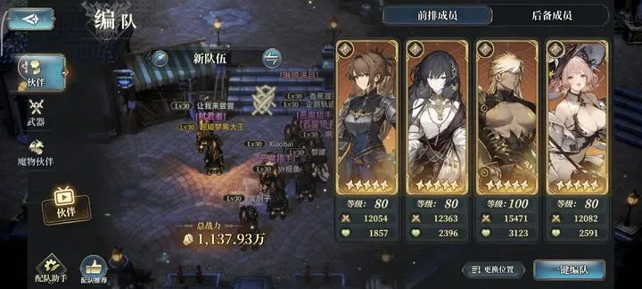 土机的神技能能够主动消耗生命值,并且在血量低于50%和25%时获得高额伤害加成,与背水机制高度契合。队伍的生存主要依靠骑士技能的伤害减免、UP土属性角色的无敌技能以及土老王的不死身等锁血或无敌效果。所以在高难度副本里,必须通过手动操作来精准开启保命技能,以此规避首领的高伤害攻击,没办法全程自动挂机。这套配置在合适的副本中发挥优异,比如在特定条件下,单次攻击的伤害就能达到数百万。