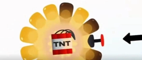 1、开局第一步先啄TNT,让它爆炸,这样能消灭一部分坏掉的玉米粒。