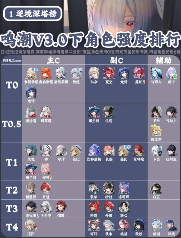 综合评价:辅助角色全面,当前榜单为T0(逆境深塔)、T0.5(冥歌海墟),后续偏谐体系扩充后预计会上调