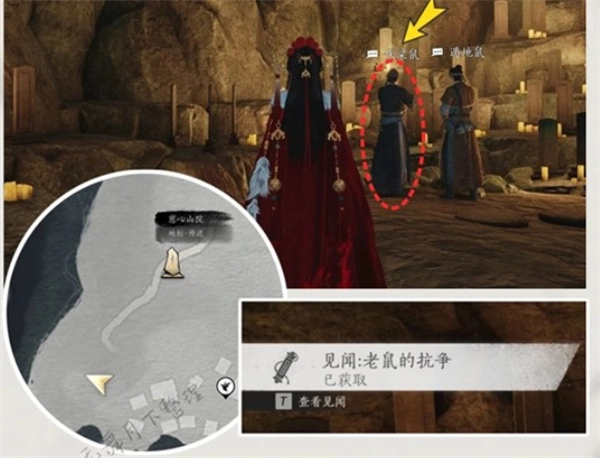 2、进入山院附近的洞穴,与洞内的【伏梁鼠】对话,解锁见闻【老鼠的抗争】。
