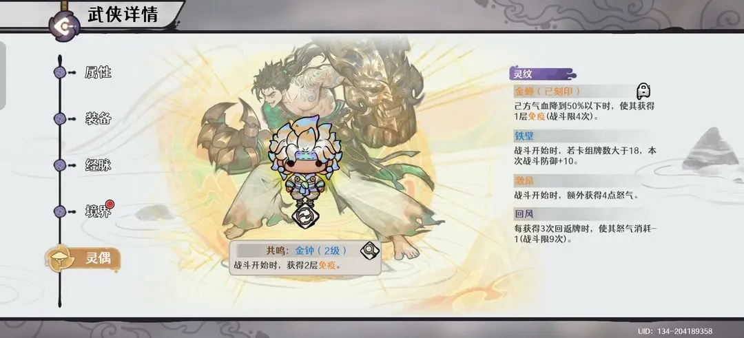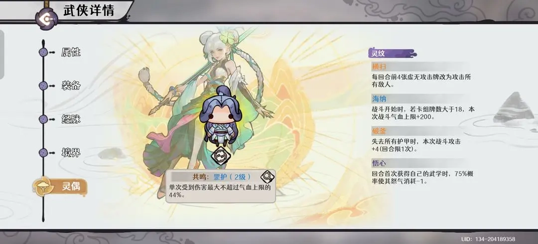 大师姐:人偶共鸣选择罡护,灵纹镶嵌各种输出类如横扫、诛威等。