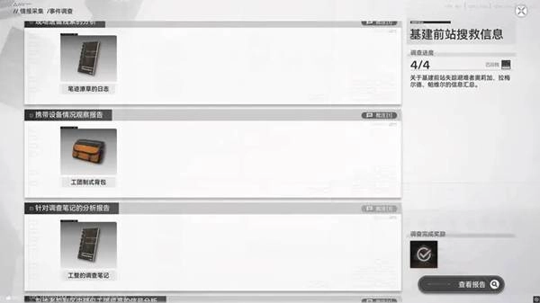 3、要等到据点“基建前站”的三级发展值完全充满后,再升级到四级,此时收集任务才算完成。