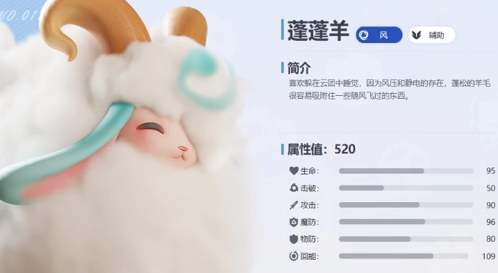 所以用了蓬蓬羊这样的一个技能可以带来羊云爆散的效果,让战斗里面提供的各种增益也可以用起来,另外他的能力当中也是非常适合跟土系角色进行搭配的。