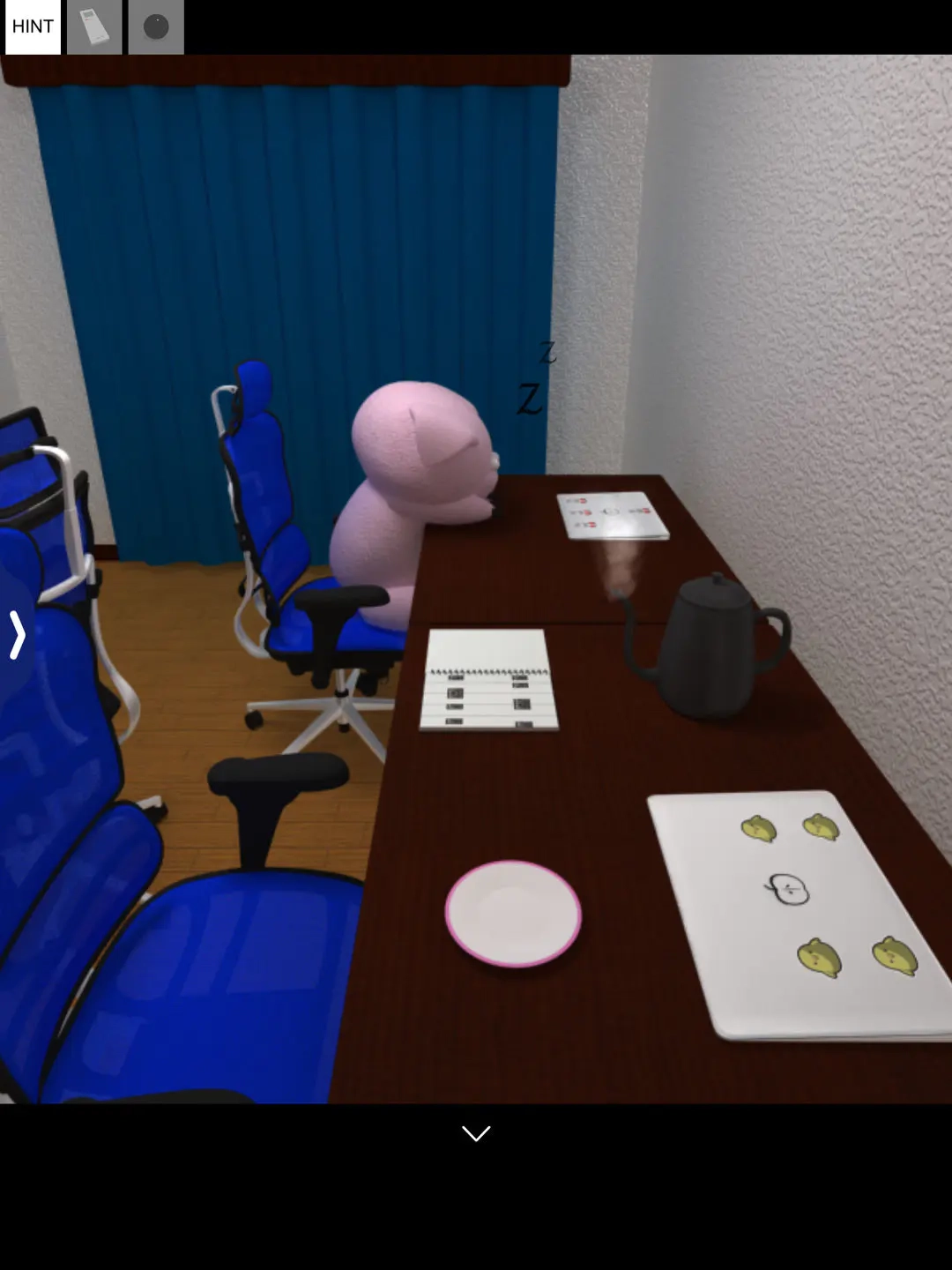 13、结合【白板区】厕纸上的图案以及椅子上的指示,可得顺序为右右左右左,这个是拍打睡觉小猪的顺序。回到【办公区】按照这个顺序拍打小猪,小猪惊醒。三只猪又开始努力工作了,游戏结束。