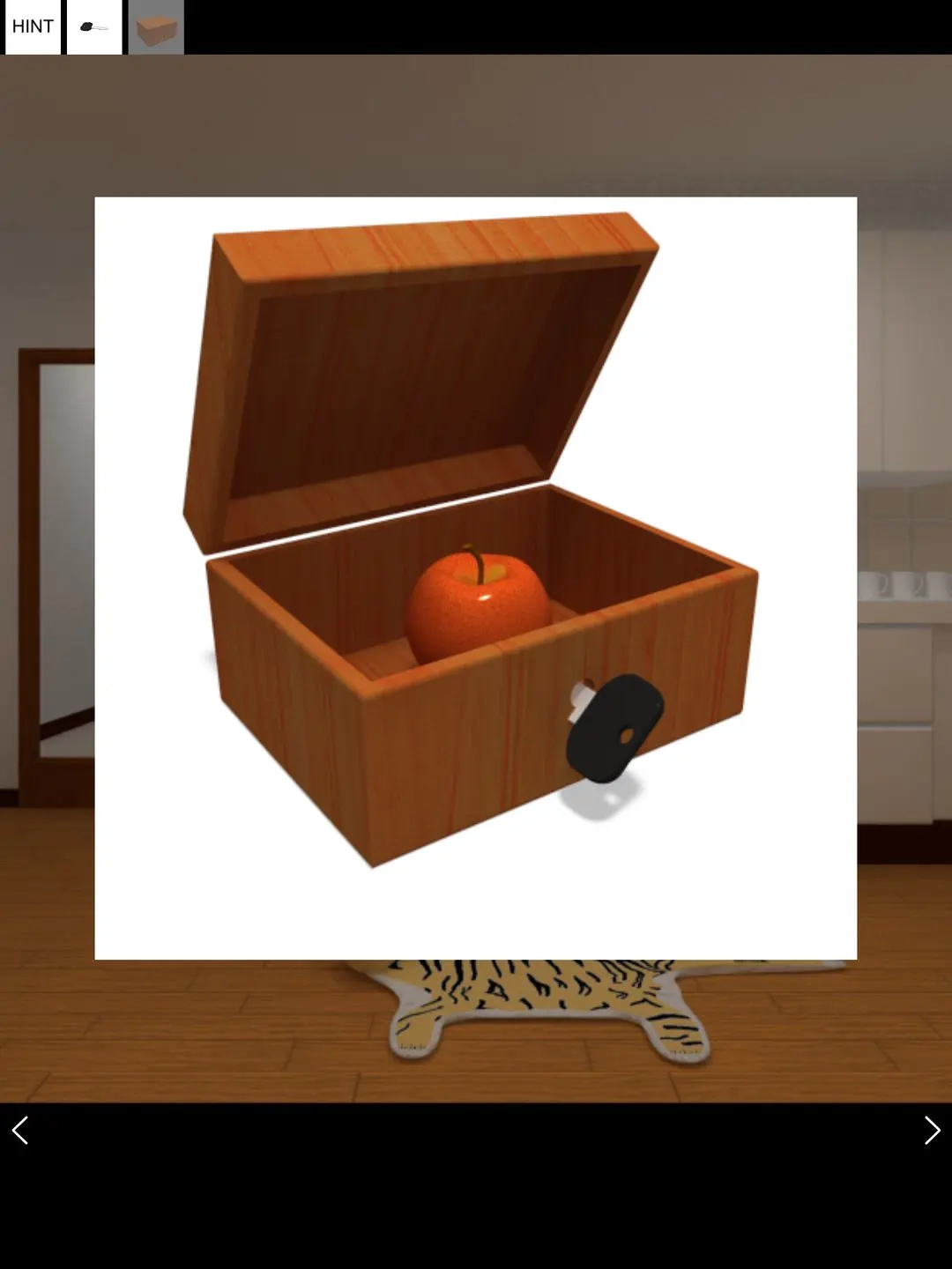 12、用硬币开启【欢迎区】左边那扇门,解锁新的场景【卫生间】。拿取左边横板上的钥匙,用钥匙打开上锁的盒子,获得一颗苹果。将苹果放到【办公区】的盘子上,卫生间里的小猪就跑回来了,可以回到【卫生间】看到厕纸上的图案。