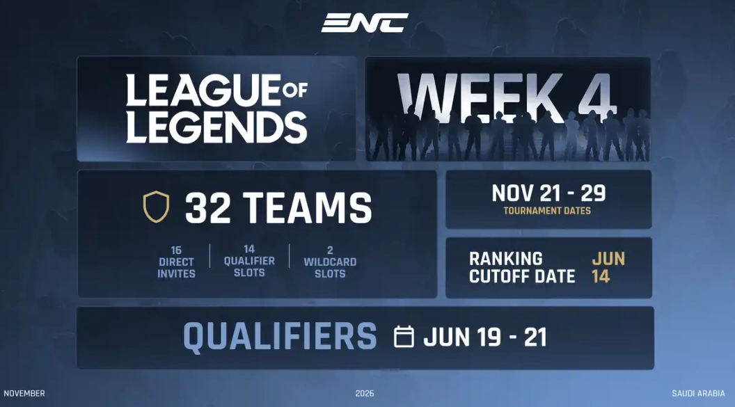 意图打造世界电竞之都的沙特·利雅得,即将举办全球规模最大的电竞综合赛事——Esports Nations Cup 2026。今日,官方公布了《英雄联盟》项目的最新参赛规则,赛事总奖金预计高达150万美元,届时将有32支国家代表队齐聚现场展开激烈角逐,让我们共同期待这场电竞盛宴。