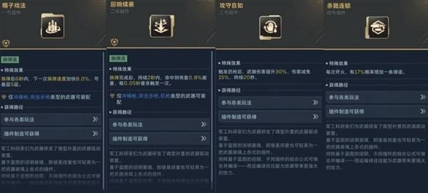 前期如无法高效获取金色品质插件,可先用紫色插件过渡,重点提升“换弹速度”和“射击伤害”。