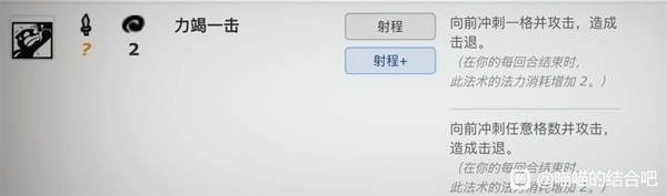 力竭一击(冲刺一格并击退,费用从2费开始随回合数逐渐上涨。优点很多的复合型技能,有位移,有击退,费用低,高伤害,debuff更是对单回合打完的无限流来说跟没有一样,升级之后可以冲刺任意格数,彻底解放移动力,全图逛街)