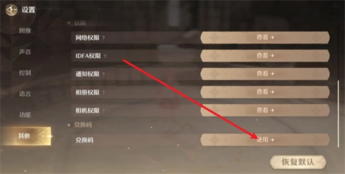 3、下滑找到兑换码,点击使用。