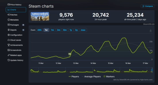 游戏转正后迎来了人气的爆发。根据SteamDB数据,该作在正式发售后的Steam同时在线玩家峰值突破了25,000人。这一数据是其在EA期间最高峰值(约1.2万人)的两倍以上,远超平时约5000人的常规活跃度。