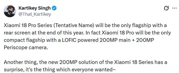 此前,小米集团总裁卢伟冰已明确确认,小米18系列将继续沿用并深耕背屏方案。为了进一步提升交互体验,小米已经加大了相关领域的研发投入,力求带来更创新的功能。