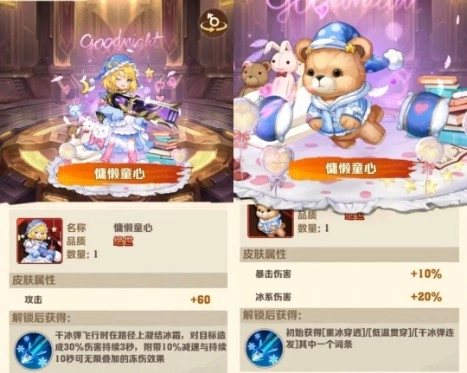 本次活动的上限奖励,是两款“慵懒童心”冰系皮肤;