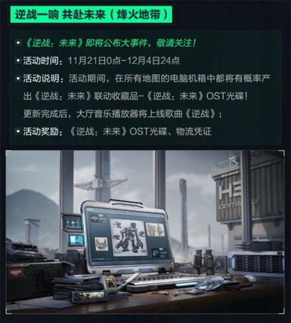 活动期间,玩家在任意地图搜索电脑机箱时,将有概率获得本次联动限定物品——《逆战:未来》OST光碟。