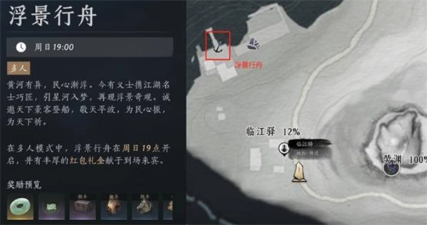 6、浮景行舟(周日19:00-20:00,挂机25分钟获得资源)