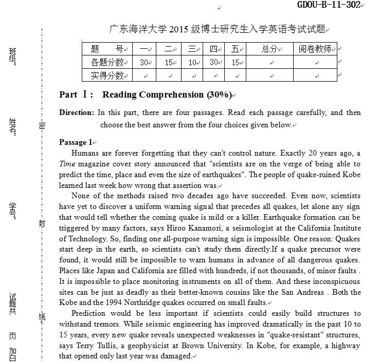 考研秘籍网提供的全国高校历年考博真题电子扫描版样张展示: