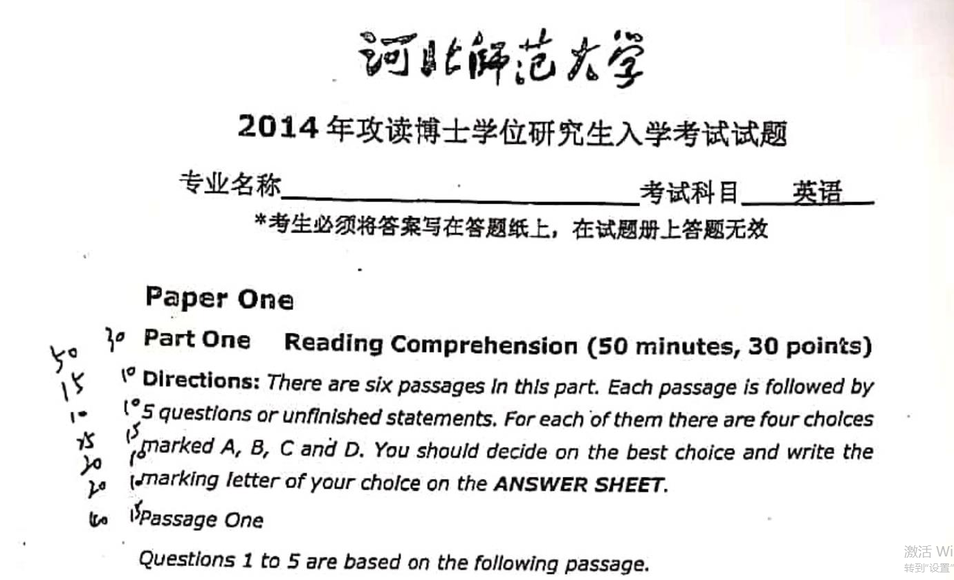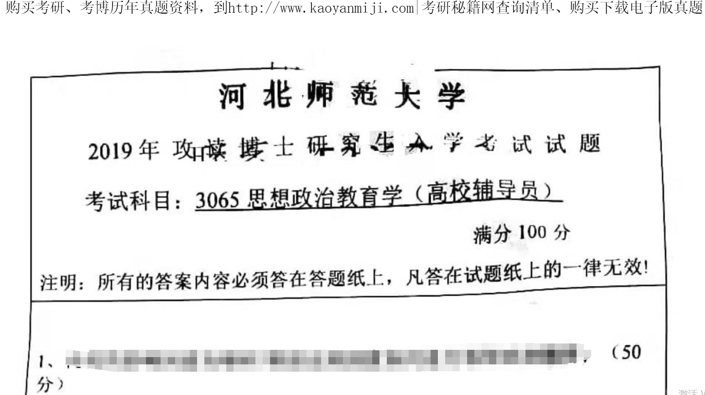说明:本站提供的河北师范大学考博真题来源于河北师范大学研究生院,除标注有“回忆版”字样的试题外,其余均为原版扫描,权威可靠;回忆版试题由当年参加硕士研究生入学考试考生回忆,内容完整。