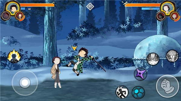 角色融合火柴人与鬼灭元素,视觉独特,操作保留原作技能如炭治郎的劈斩。