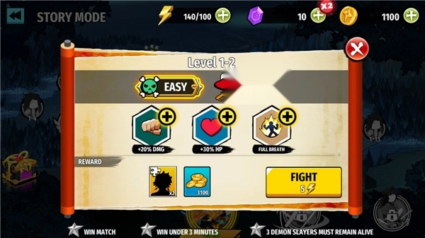 5、胜利后获得金币和宝箱,开启宝箱收集人物碎片,集齐指定数量可解锁新火柴人,如灶门炭治郎或我妻善逸。