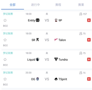 3、赛事筛选:主界面选择游戏类型,筛选进行中的比赛。