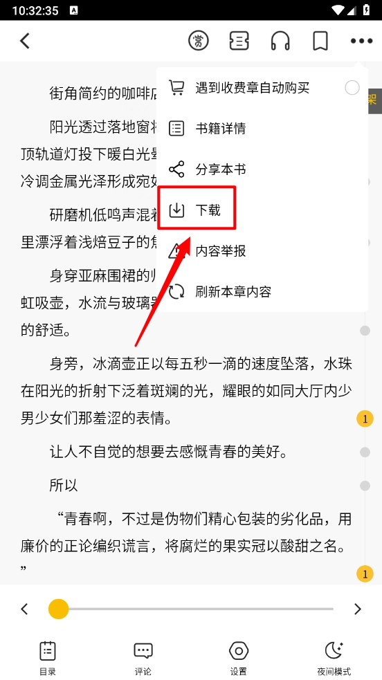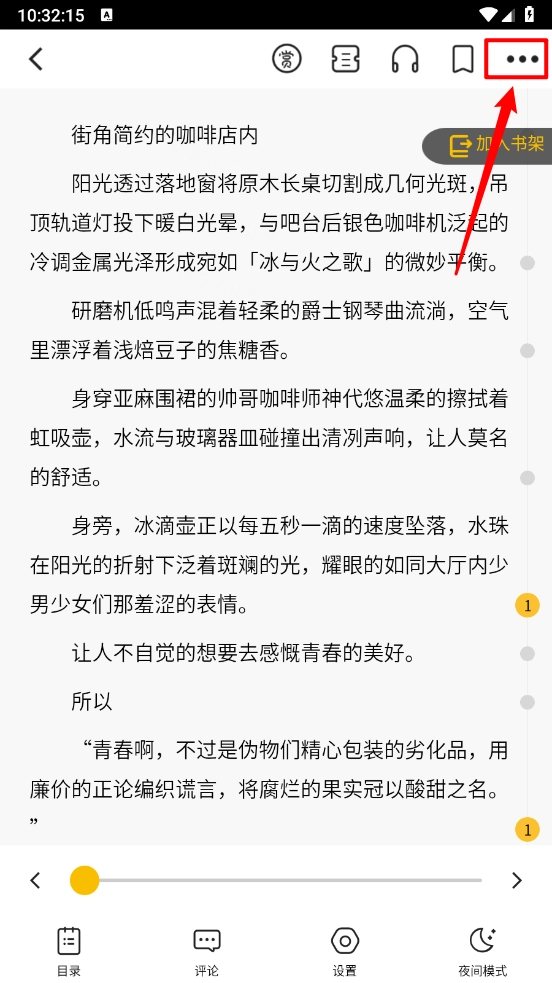 4. 阅读界面右上角点击三个点图标。