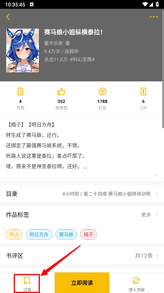 3. 点击左下角"订阅"按钮,作品加入追踪列表。