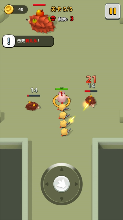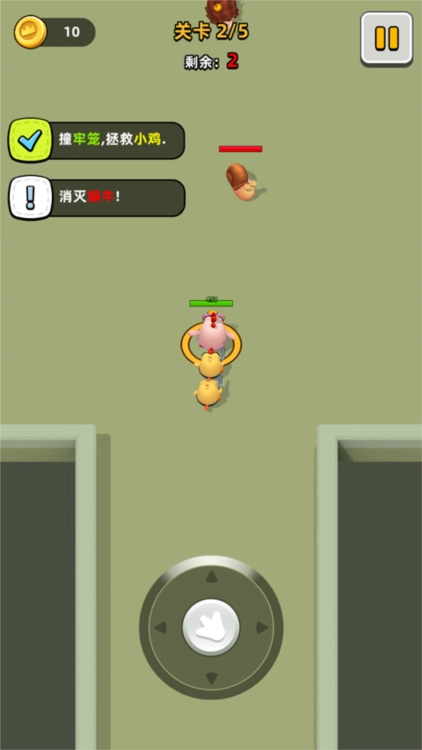 2. 滑动屏幕操纵小鸡自动攻击敌人,注意躲避障碍物。
