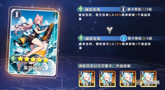 乘风破浪:被攻击时随机三人75%概率移除两个减益。桃乐减益清除能力匹配。