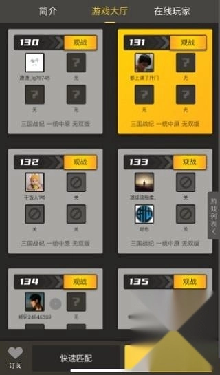 3. 联机大厅显示房间状态,绿色表示可加入