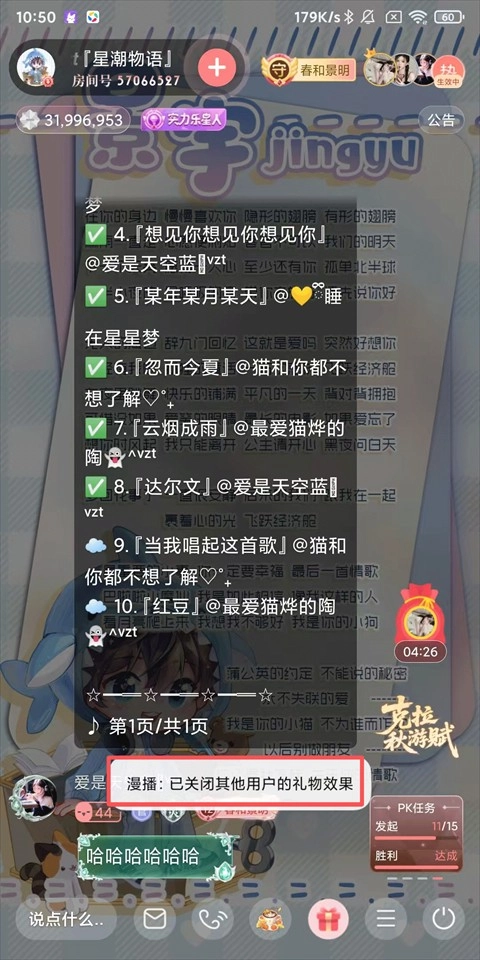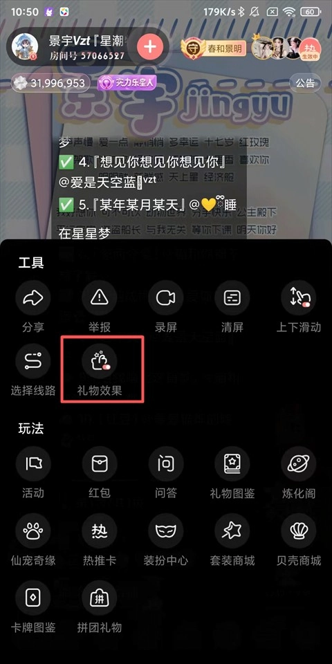 5、直播模块支持礼物特效开关,用户可自由调整互动效果显示
