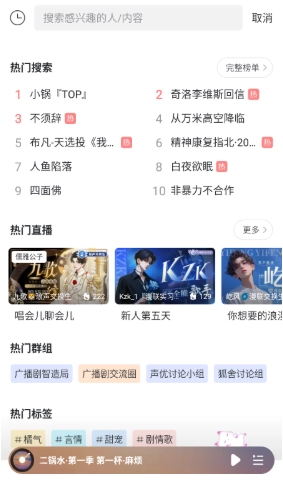 2、专业播放器提供歌词同步显示与循环播放,内置弹幕系统实现收听互动
