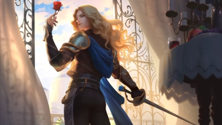 英雄救美的骑士兰斯洛特大难不死,每日在奥黛塔窗前和夜莺玫瑰一起弹唱着“鎏金城浪漫骑士小调”,可一纸婚约却让兰斯洛特带着无法被诉说的心情无声告别。