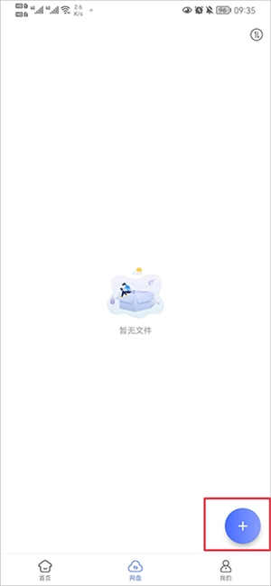 1、打开蓝奏浏览器,在网盘界面中点击右下角+号;