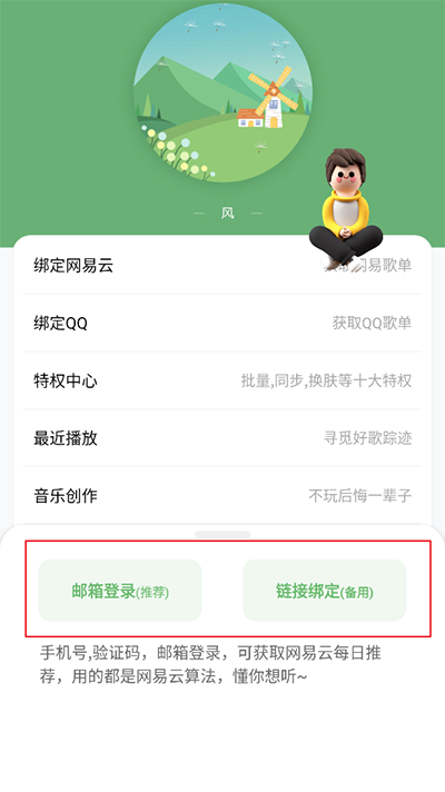 2、如图,登录网易云账号,有邮箱登录与链接直绑两种选项;任意一种都是可以的,作者做好了丰富的文字教程。